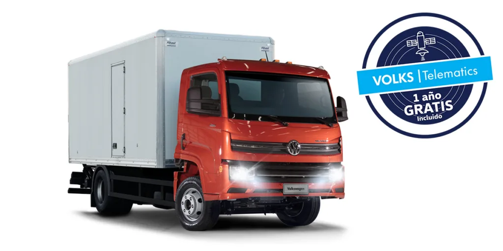 Carga útil más carrocería: 5,800 kg. Potencia / Torque: 163 hp / 600 Nm. Peso bruto vehicular: 8,800 kg. Tracción: 4×2. Incluye 1 año gratis de VOLKS | Telematics